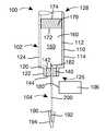 용기(102)는 또한 내부 및 외부 표면(172, 174)을 갖는 스토퍼 또는 피스톤(170)을 포함할 수 있다.  피스톤(170)은 벽(110)에 의해 형성되는 단부(128) 내에 수용될 수 있으며, 용기(102)의 단부(126, 128) 사이에서 보어(130)를 따라 이동할 수 있다.  이런 실시예에 따라서, 약물 제품(160)이 그 내부에 배치되는 저장부(150)는 피스톤(170)과 벽(110, 140)의 내부 표면(112, 142, 172)에 의해 형성될 수 있다.The