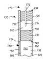 도 10에도 예시된 바와 같이, 용기 바늘(772)을 포함하는 유체 전달 시스템(770)은 밀봉 조립체와 연계하여 사용될 수 있다.  용기 바늘(772)은 보관 상태로 예시되어 있으며, 용기 바늘(772)은 바늘(772)의 첨단부(774)가 공간(760) 내에 배치되도록 배리어(726)를 통해 배치된다.  첨단부(774)는 도시되지 않은 전달 상태에서 가요성 벽(724)을 관통하고, 저장부(740) 내에 매달려진다.As also illustrated in FIG. 10 , a