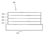 달리 명시되지 않는다면, 다양한 실시 형태의 임의의 층은 임의의 적합한 방법에 의해 피착될 수 있다. 유기층의 경우, 바람직한 방법에는 열 증발, 전체적으로 참고로 포함되는 미국 특허 제6,013,982호 및 제6,087,196호에 기재된 것과 같은 잉크젯, 전체적으로 참고로 포함되는 미국 특허 제6,337,102호(Forrest et al.)에 기재된 것과 같은 유기 기상 증착(OVPD) 및 전체적으로 참고로 포함되는 미국 특허 출원 제10/233,470호에 기재된 것과 같은 유기 증기 제트 인쇄(OVJP)에 의한 피착이 포함된다. 다른 적합한 피착 방법에는 스핀 코팅 및 다른 용액 기반 공정이 포함된다. 용액 기반 공정은 바람직하게는 질소 또는 불활성 분위기 내에서 수행된다. 나머지 다른 층들의 경우, 바람직한 방법에는 열 증발이 포함된다. 바람직한 패턴화 방법에는 마스크를 통한 증착, 전체적으로 참고로 포함되는 미국 특허 제6,294,398호 및 제6,468,819호에 기재된 것과 같은 저온 용접 및 몇몇 피착 방법, 예를 들어 잉크젯 및 OVJP와 관련된 패턴화가 포함된다. 다른 방법이 또한 사용될 수 있다. 피착시킬 재료는 이것이 특정 피착 방법과 양립될 수 있게 하기 위해 개질될 수 있다. 예를 들어, 분지형 또는 비분지형이고 바람직하게는 3개 이상의 탄소를 함유하는, 알킬 및 아릴 기와 같은 치환기를 소분자에 사용하여, 소분자가 용액 가공될 수 있는 능력을 향상시킬 수 있다. 20개의 탄소 또는 그 이상을 갖는 치환기가 사용될 수 있으며, 3 내지 20개의 탄소가 바람직한 범위이다. 비대칭 구조를 갖는 재료는 대칭 구조를 갖는 것들보다 더 우수한 용액 가공성을 가질 수 있는데, 그 이유는 비대칭 재료가 재결정화 경향이 더 적을 수 있기 때문이다. 소분자가 용액 가공될 수 있는 능력을 향상시키기 위해서, 덴드리머 치환기가 사용될 수 있다.Unless otherwise specified, any layer of the various embodiments may be deposited by any suitable method. For the organic layer, preferred methods include thermal evaporation, ink jet as described in US Pat. Nos. 6,013,982 and 6,087,196, which are incorporated by reference in their entirety, and US Pat. deposition by organic vapor deposition (OVPD) and organic vapor jet printing (OVJP) as described in US Patent Application Serial No. 10/233,470, which is incorporated by reference in its entirety. Other suitable deposition methods include spin coating and other solution based processes. The solution based process is preferably carried out in nitrogen or in an inert atmosphere. For the other layers, preferred methods include thermal evaporation. Preferred patterning methods include deposition through a mask, low temperature welding such as those described in US Pat. Nos. 6,294,398 and 6,468,819, which are incorporated by reference in their entirety, and patterning associated with some deposition methods, such as inkjet and OVJP. Other methods may also be used. The material to be deposited can be modified to make it compatible with a particular deposition method. For example, substituents such as alkyl and aryl groups, branched or unbranched and preferably containing three or more carbons, can be used on small molecules to enhance their ability to be solution processed. Substituents having 20 carbons or more may be used, with 3 to 20 carbons being the preferred range. Materials with asymmetric structures may have better solution processability than those with symmetric structures, since asymmetric materials may be less prone to recrystallization. To enhance the ability of small molecules to be solution processed, dendrimer substituents can be used.