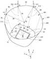 상기 개구부(445)의 상면 또는 상단 테두리인 제2윤곽선(B0)은 상기 개구부(445)의 상면 중심(P2)으로부터 제1축(X) 방향의 직선과 교차하는 제4지점(B1), 상기 제2축(Y) 방향의 직선과 교차하는 제5지점(B2), 및 상기 제3축(W) 방향의 직선과 교차하는 제6지점(B3)을 포함한다.The second contour line B0, which is the upper surface or upper edge of the