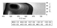 도 49는 발광 소자 8-1의 계산에 의하여 얻어진 2D 등고선도.1 is a diagram showing a flow of calculating external quantum efficiency of a fluorescent light emitting device;