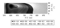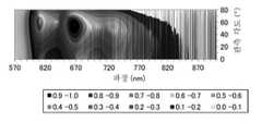도 30은 발광 소자 3-1의 EL 발광 스펙트럼의 각도 의존성을 측정한 2D 등고선도.
