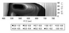 도 44는 발광 소자 7-1의 EL 발광 스펙트럼의 각도 의존성을 측정한 2D 등고선도.