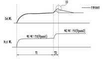 선택된 워드 라인과 인접한 비선택 워드 라인에 연결된 메모리 셀들의 게이트 전극 전압은 각각 리드 전압과 제1 패스 전압으로 충전된다. 선택된 워드 라인과 인접한 비선택 워드 라인에 연결된 메모리 셀들이 각각 리드 전압과 제1 패스 전압으로 충전될 정도의 충분한 시간인 제1 기준 시간(T1)이 흐르고 나면, 인접한 비선택 워드 라인에 인가되는 전압을 제2 패스 전압(Vpass2)을 인가한다. 여기서 제2 패스 전압은 제1 패스 전압보다 더 큰 전압 레벨을 갖는다.The gate electrode voltages of the memory cells connected to the selected word line and the adjacent unselected word line are respectively charged with the read voltage and the first pass voltage. After the first reference time T1, which is a sufficient time for the memory cells connected to the selected word line and the adjacent unselected word line to be charged with the read voltage and the first pass voltage, respectively, passes, the voltage applied to the adjacent unselected word line to apply the second pass voltage Vpass2. Here, the second pass voltage has a higher voltage level than the first pass voltage.