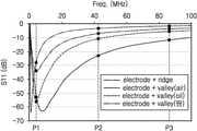 도 3은 일 실시예에 따른 지문 인식 센서를 통하여 측정된 데이타를 나타낸 그래프이다. 여기서 가로축은 도 1에 나타낸 바와 같이 패드 전극(16) 및 패드부(12)를 통하여 피검체(100)에 인가되는 웨이브 신호(W1)의 다중 주파수(frequency) 값을 나타내었으며, 세로축은 피검체(100)로부터 반사되는 반사 신호 값을 나타내었다.3 is a graph illustrating data measured through a fingerprint recognition sensor according to an exemplary embodiment. Here, the horizontal axis represents multiple frequency values of the wave signal W1 applied to the subject 100 through the