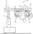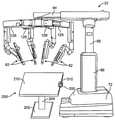 지지 링크장치(122)는 배향 플랫폼(124)을 장착 베이스(72)에 대해 선택적으로 위치시키도록 및/또는 배향시키도록 작동할 수 있다.  지지 링크장치(122)는 기둥 베이스(86), 병진운동가능한 기둥 부재(88), 쇼울더 조인트(90), 붐 베이스 부재(92), 붐 제1 단 부재(94), 그리고 리스트 조인트(98)를 포함하고 있다.  지지 링크장치(122)는 쇼울더 조인트(90)와 붐 제1 단 부재(94)의 원위 단부 사이의 거리를 선택적으로 설정하도록 작동할 수 있다.  리스트 조인트(98)는 붐 제1 단 부재(94)의 원위 단부를 배향 플랫폼(124)에 회전가능하게 결합시킨다.  리스트 조인트(98)는 배향 플랫폼(124)의 장착 베이스(72)에 대한 각 방향을 선택적으로 설정하도록 작동할 수 있다.The