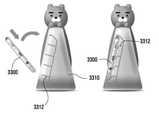 도 33a, 도 33b를 참조하면, 다양한 실시예에 따른 거치대(3310)는 아동용 거치대로서, 플렉시블한 재질로 구성되되, 전자 장치(3300)가 거치되는 내부 공간을 격자 구조(3312)로 하여 다양한 사이즈의 전자 장치를 안정적으로 거치할 수 있다. 거치대(3310)에 구비된 내부 격자 구조(3312)는 플렉시블한 재질로 구성되어서, 수용된 전자 장치(3300)에 가해지는 충격 등을 흡수할 수 있다. 또한, 거치대(3310)는 외관뿐만 아니라 내부 격자 구조(3312)도 플렉시블한 재질로 구성되어서, 다양한 사이즈의 전자 장치, 예컨대 다양한 사이즈의 스마트폰을 내부 공간으로 수용하여 거치할 수 있다.Referring to FIGS. 33A and 33B , a