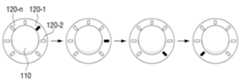 도 3을 참고하면, 복수의 LED(120-1 ~ 120-7)는 조그휠 형태의 조작 부재(110) 주위를 일정 간격을 두고 배치될 수 있다. 사용자는 조작 부재(110)를 회전하여 원하는 기능을 선택할 수 있다. 그리고 조작 부재(110)를 회전하여 선택된 기능에 대응하는 LED 가 점등될 수 있다.Referring to FIG. 3 , the plurality of LEDs 120 - 1 to 120 - 7 may be disposed around the jog wheel-shaped