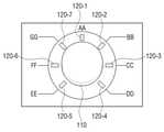 도 3은 본 개시의 일 실시 예에 따른 가전 기기(100)에서 복수의 LED(120-1 ~ 120-7)의 배치 형태를 도시한 것으로서, 복수의 LED(120-1 ~ 120-7)가 조그휠 형태의 조작 부재(110)를 둘러싸도록 배치된 예를 도시한 것이다.3 is a view showing the arrangement of a plurality of LEDs 120-1 to 120-7 in the