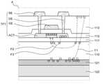층간 절연층(113) 상에 서로 이격된 소스 전극(SE) 및 드레인 전극(DE)이 배치된다. 소스 전극(SE) 및 드레인 전극(DE)은 액티브층(ACT)과 전기적으로 연결될 수 있다. 소스 전극(SE) 및 드레인 전극(DE)은 도전성 물질, 예를 들어, 구리(Cu), 알루미늄(Al), 몰리브덴(Mo), 티타늄(Ti), 또는 이들의 합금으로 구성될 수 있으나, 이에 제한되는 것은 아니다.A source electrode SE and a drain electrode DE spaced apart from each other are disposed on the