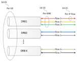 그 다음으로 더 세분화된 구분 단위는 QoS flow 혹은 IP flow 단위로 데이터를 구분할 수 있다. 한 단말의 한 베어러는 여러 개의 IP flow들과 맵핑될 수 있기 때문에 IP flow 단위(혹은 QoS flow)로 구분할 수 있다. 예를 들면 단말 1번의 베어러 1번의 IP flow 1번, 단말 1번의 베어러 1번의 IP flow 2번, 단말 1번의 베어러 2번의 IP flow 1번, 단말 2번의 베어러 1번의 IP flow 1번, 단말 2번의 베어러 1번의 IP flow 2번 등으로 구분될 수 있다.Next, a more subdivided classification unit may classify data in a QoS flow or IP flow unit. Since one bearer of one UE can be mapped with multiple IP flows, it can be divided into IP flow units (or QoS flows). For example,