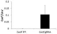 Figure 4b: (i) pZUFCas9 (SEQ ID NO: 14) alone or (ii) transformation with linear DNA (see Example 3) comprising pZUFCas9 and Yarrowia-optimized pre-sgRNA expression cassette of SEQ ID NO: 18 Transient targeting efficiency in Yarrowia lipolytica cells. The y-axis represents the frequency of cells transformed with pZUFCas9 (ie, Ura+ cells), which are also cannabanin-resistant (CanR ). Error bars represent standard deviation.