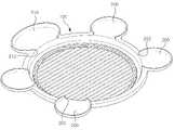 또, 메인불판(100)의 둘레부에 고기와 곁들여서 구워먹는 재료들을 담는 보조접시(210)가 더 구비되면, 이러한 재료를 담은 보조접시를 테이블에 위에 올려놓지 않아도 되므로 테이블을 좀 더 넓게 사용할 수 있는 장점도 가진다.In addition, if an