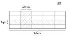 도 2를 더 참조하면, 관계형 데이터베이스의 일 예시가 도시된다(200). 관계형 데이터베이스에서 행(row)과 열(column)으로 이루어진 데이터의 집합을 테이블로 지칭하며, 테이블을 구성하는 각 데이터는 유일한 값을 가지게 된다. 관련하여, 테이블을 구성하는 데이터들 중 가로로 묶은 데이터셋이 행에 해당하며, 관계형 데이터베이스에서는 튜플(Tuple)로 지칭될 수 있다. 또한, 테이블을 구성하는 데이터들 중 세로로 묶은 데이터셋이 열에 해당하며, 관계형 데이터베이스에서는 속성(Attribute)으로 지칭될 수 있다. 또한, 이러한 관계형 데이터베이스에서 정보를 구분하여 저장하는 기본 단위가 되는 테이블은 릴레이션(Relation)으로 지칭될 수 있다. 튜플을 구별하기 위한 속성의 집합을 "키"로 지칭할 수 있다(즉, 각 행 별로 고유의 키가 존재할 수 있다). 이렇듯, 관계형 데이터베이스는 데이터의 집합을 테이블로 묶어 저장하는 것을 하나의 특징으로 할 수 있다.With further reference to FIG. 2 , an example of a relational database is shown 200 . In a relational database, a set of data consisting of rows and columns is referred to as a table, and each data constituting the table has a unique value. In relation to this, a horizontally grouped dataset among data constituting a table corresponds to a row, and may be referred to as a tuple in a relational database. In addition, a vertically grouped dataset among data constituting a table corresponds to a column, and may be referred to as an attribute in a relational database. Also, in such a relational database, a table serving as a basic unit for distinguishing and storing information may be referred to as a relation. A set of attributes for distinguishing tuples may be referred to as a "key" (that is, a unique key may exist for each row). As such, a relational database may have one characteristic of storing a set of data in a table.