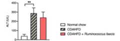 도 2b는 CDAHFD 식이에 의해 유도된 간손상 동물 모델에서 루미노코쿠스 파에시스 투여에 따라 ALT 수준이 감소한 것을 나타낸 도면이다.