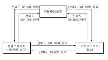 또한, 운전자 경고와 함께 자율주행모드에서 위치 추정의 신뢰도가 80% 이하인 경우에 운전보조모드로 변환되고, 운전자 경고와 함께 자율주행모드에서 위치 추정의 신뢰도가 90% ~ 100%이면 자율주행모드로 변환된다.In addition, when the reliability of location estimation in autonomous driving mode with driver warning is 80% or less, it is converted to driving assistance mode. is converted