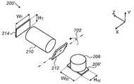 도 2a는 제1 업라이트 카메라(202) 및 제2 폴딩된 카메라(204)를 포함하는 듀얼-애퍼처 카메라(200)를 개략적으로 도시한다. 도시된 XYZ 좌표 계가 본 그리고 모든 이하의 "카메라" 도면들의 설명에서 사용된다. 예를 들어, 업라이트 카메라(202)는 광학 축(207)을 갖는 와이드 렌즈 어셈블리(또는 간단히 "렌즈")(206) 및 와이드 센서(208)를 포함하는 와이드 카메라이다. 예를 들어, 폴딩된 카메라(204)는 광학 축(211)을 갖는 텔레 렌즈(210) 및 텔레 센서(214)를 포함하는 텔레 카메라이다. OPFE(예를 들어, 프리즘)(212)는 폴딩된 텔레 카메라의 일부일 수 있거나, 축(207)에 평행한 광 경로를 축(211)에 평행한 광 경로로 폴딩하고 이로써 텔레 렌즈 내로 폴딩하는 별도의 요소일 수 있다. 와이드 센서 및 텔레 센서는 각각의 직교 평면들, 각각 XZ 평면 및 XY 평면에 놓여있다. 예를 들어, 와이드 센서 및 텔레 센서는 각각 높이(H) 치수 및 폭(W) 치수를 갖는 실질적으로 직사각형이다. 따라서, 와이드 센서(208)는 높이(HW)와 폭(WW)을 가지며, 텔레 센서(214)는 높이(HT)와 폭(WT)을 갖는다. 두 센서들의 H/W 비율은 일반적으로(반드시 그런 것은 아니지만) 9/16 또는 3/4이다. 폴딩된 카메라에서, 센서(214)를 Y 방향으로 그 높이를 포지셔닝하는 것은 더 작은 호스트 장치(예를 들어, 스마트 폰)의 두께를 가능하게 한다는 점에서 유리하다. 도 2a의 카메라(200)(및, 도 3, 도 4a 및 도 5a의 카메라(200))에서, 센서들(208 및 214)의 폭 방향들은 서로 평행하고 X 축에 평행하다.2A schematically shows a dual-