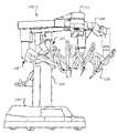"로봇 어셈블리(robotic assembly)"라는 용어가 그 위에 장착되는 툴이 없는 매니퓰레이터를 내포하고 있을 수도 있더라도, 본 명세서에 기술되어 있는 로봇 매니퓰레이터 어셈블리는 로봇 매니퓰레이터 및 그 위에 장착되는 툴(툴은 종종 수술 버전들에 맞는 수술 기구를 구비함)을 종종 포함할 수 있다. "툴(tool)"이라는 용어는 범용 로봇 툴이나 산업용 로봇 툴과 전문 로봇 수술 기구들 양자 모두를 내포하고 있는데, 이러한 후자의 구조들은 종종 조직의 조종, 조직의 치료, 조직의 촬상 또는 이와 유사한 것에 적합한 엔드 이펙터를 포함한다. 툴/매니퓰레이터 인터페이스는 종종 툴과 대체 툴의 신속한 제거와 교체를 허용하는 쾌속 접속해제 툴 홀더 또는 커플링일 수 있다. 매니퓰레이터 어셈블리는 종종 로봇 절차의 적어도 일부 동안 공간 안에 고정되어 있는 베이스를 가질 수 있고, 매니퓰레이터 어셈블리는 툴의 엔드 이펙터와 베이스 사이에서 다자유도를 포함할 수 있다. (전기수술 패들이나 이와 유사한 것을 에너지공급하는 그립 장치(gripping device)의 죠들의 개방과 폐쇄와 같은) 엔드 이펙터의 작동은 종종 이러한 매니퓰레이터 어셈블리 자유도에 추가되거나 이와 별개일 수 있다.Although the term "robotic assembly" may connote a manipulator without a tool mounted thereon, the robotic manipulator assembly described herein includes a robotic manipulator and a tool mounted thereon (tools are often surgical versions). often equipped with surgical instruments suitable for the The term “tool” encompasses both general-purpose robotic tools or industrial robotic tools and specialized robotic surgical instruments, the latter structures often being used for tissue manipulation, tissue treatment, tissue imaging, or the like. A suitable end effector is included. The tool/manipulator interface can often be a quick disconnect tool holder or coupling that allows for quick removal and replacement of tools and replacement tools. The manipulator assembly may often have a base fixed in space during at least a portion of the robotic procedure, and the manipulator assembly may include multiple degrees of freedom between the base and the end effector of the tool. The actuation of an end effector (such as opening and closing of the jaws of a gripping device energizing an electrosurgical paddle or the like) is often in addition to or separate from these manipulator assembly degrees of freedom.