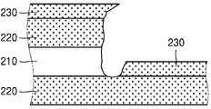 선택적 실시예에서, 상기 플라즈마 전처리가 비대칭 플라즈마 공정을 이용하여 수행될 수 있다. 예를 들어, 상부 표면, 하부 표면, 상기 상부 표면과 상기 하부 표면을 연결하는 측면을 갖는 단차 구조물에 대해, 상기 측면과 평행한 방향으로 플라즈마가 인가될 수 있다. 이 경우, 습식 식각 단계가 수행됨으로써 측면 상에 형성된 보호막이 제거되면, 식각 용액에 노출된 단차 구조의 측면은 식각될 수 있다. 그러나, 측면 상에 위치한 보호막을 식각하여 소정 간격으로 이격된 보호막을 형성하는 것과는 달리, 단차 구조물의 측면을 식각할 이유가 없으므로, 플라즈마 전처리는 비대칭 플라즈마 공정을 이용하여 수행될 필요가 없다. 이는 도 25 및 도 26를 참조하여 더 자세히 상술한다.In an alternative embodiment, the plasma pretreatment may be performed using an asymmetric plasma process. For example, plasma may be applied to a stepped structure having an upper surface, a lower surface, and a side surface connecting the upper surface and the lower surface in a direction parallel to the side surface. In this case, when the protective layer formed on the side surface is removed by performing the wet etching step, the side surface of the stepped structure exposed to the etching solution may be etched. However, there is no reason to etch the side surface of the stepped structure, unlike the formation of a protective film spaced apart from each other by etching the protective film located on the side surface, so that plasma pretreatment does not need to be performed using an asymmetric plasma process. This will be described in more detail with reference to FIGS. 25 and 26 .