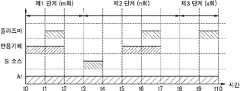 선택적 실시예에서, 제1 단계는 반응기체 사전-유동 단계(t0~t1)를 포함할 수 있다. 반응기체의 사전-유동 단계를 수행함으로써, 플라즈마가 반응 공간에 공급되기 전에 반응 공간 내에 반응기체의 분포가 균일하게 될 수 있고, 그에 따라 플라즈마 공급단계에서 활성종의 분포가 균일하게 되어 보다 안정적인 공정이 달성될 수 있다.In an optional embodiment, the first stage may comprise a reactive gas pre-flow stage (t0-t1). By performing the pre-flowing step of the reactive gas, the distribution of the reactive gas in the reaction space before the plasma is supplied to the reaction space can be made uniform, so that the distribution of the active species is uniform in the plasma supplying step, making a more stable process This can be achieved.