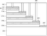 그러나 비아 콘택 홀을 형성할 때, 과도한 식각으로 인하여 상기 비아 콘택 홀이 제2 절연층을 관통하여 계단형 구조의 다른 제2 절연층과 연결될 수 있다. 이는 반도체 소자 구동 시 전기적 합선을 일으키는 원인이 된다.However, when the via contact hole is formed, the via contact hole may pass through the second insulating layer and be connected to the other second insulating layer having a stepped structure due to excessive etching. This causes an electrical short circuit when driving a semiconductor device.