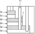 도 1a에 도시된 바와 같이, 비아 콘택 홀(11)이 형성될 때, 과도한 식각으로 인해, 상기 비아 콘택 홀(11)은 제2 절연층(3b)을 관통하여 또 다른 제2 절연층(3a)에도 연결된다. 도 2b에 도시된 바와 같이 제2 절연층(3)과 비아 콘택 홀(12)이 금속으로 충진될 경우, 제2 절연층들(3a, 3b)간에 전기적 합선이 발생할 수 있으며, 이로써 정상적인 소자 작동이 불가능하게 된다.As shown in FIG. 1A , when the
