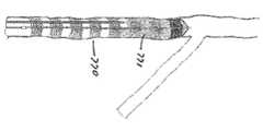 이 강모의 굽힘은 장치가 접힌 상태 내에서 변형되어지는 것을 가능하게 하여, 접힌 상태 내에서 직경이 세그먼트 사이에 이러한 공간이 존재하지 않는 경우보다 더 작게 된다.This bending of the bristles allows the device to deform in the folded state, so that in the folded state the diameter is smaller than if there were no such spaces between the segments.