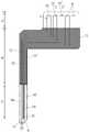 22 shows schematic fragmentary views showing other variants of the configuration of the first sensing section of the first working electrode and the second sensing section of the second working electrode in Example 2;