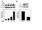 도 8A는 웨스턴 블롯팅을 통해 독시사이클린의 처리농도에 따른 PHF20의 발현을 확인한 결과(상부 패널) 및 루시퍼라제 리포터 유전자 분석을 통해 상기 PHF20의 발현에 따른 YY1 프로모터의 활성을 확인한 결과(하부 패널)를 나타낸 도이다.