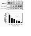 준비된 세포를 얼음 위에 두었으며, 상기 세포에 용해 버퍼를 처리하여 세포 용해물을 제조하였다. 상기 용해 버퍼는 50 mM Tris-HCl(pH7.5), 1% v/v Nonidet P-40, 120 mM NaCl, 25 mM sodium fluoride, 40 mM β-glycerol phosphate, 0.1 mM sodium orthovanadate, 1 mM phenylmethylsulfonyl fluoride, 1 mM benzamidine 및 2 μM microcystin-LR을 포함한다. 세포 용해물을 13000 rpm에서 30 분 동안 원심분리하여 단백질을 수득하였다. 상기 단백질을 10.0 내지 7.5% 겔을 이용한 SDS-PAGE로 전개하였다. 전개된 단백질을 Immobilon-P 멤브레인(Millipore)으로 옮겼다. 그 후 멤브레인을 5% 탈지유 및 0.2% Tween-20을 함유하는 1X TBS(tri-buffered saline buffer; 140mM NaCl, 2.7mM KCl, 250mM Tris HCl, pH7.4)을 처리하여 1시간 동안 블로킹하였다. 그 후 1000배 희석된 각 단백질에 대한 1차 항체를 처리한 후 4℃에서 밤새도록 배양하였다. 반응 후 TBS로 멤브레인을 세척하였다. 세척된 멤브레인에 2000배 희석된 2차 항체(horseradish peroxidase-conjugated anti-mouse IgG 또는 anti-rabbit IgG(Komabiotech, Seoul, Korea))를 처리한 후 배양하였다. 배양 후 멤브레인을 TBS로 세척하였으며, 제조사의 매뉴얼에 따라 단백질을 검출하였다.The prepared cells were placed on ice, and the cells were treated with a lysis buffer to prepare a cell lysate. The lysis buffer was 50 mM Tris-HCl (pH7.5), 1% v/v Nonidet P-40, 120 mM NaCl, 25 mM sodium fluoride, 40 mM β-glycerol phosphate, 0.1 mM sodium orthovanadate, 1 mM phenylmethylsulfonyl fluoride , containing 1 mM benzamidine and 2 μM microcystin-LR. Cell lysates were centrifuged at 13000 rpm for 30 minutes to obtain proteins. The protein was developed by SDS-PAGE using a 10.0 to 7.5% gel. The developed protein was transferred to an Immobilon-P membrane (Millipore). Thereafter, the membrane was treated with 1X TBS (tri-buffered saline buffer; 140 mM NaCl, 2.7 mM KCl, 250 mM Tris HCl, pH 7.4) containing 5% skim milk and 0.2% Tween-20 and blocked for 1 hour. Thereafter, the primary antibody for each protein diluted 1000-fold was treated and incubated overnight at 4°C. After the reaction, the membrane was washed with TBS. The washed membrane was treated with a 2000-fold diluted secondary antibody (horseradish peroxidase-conjugated anti-mouse IgG or anti-rabbit IgG (Komabiotech, Seoul, Korea)) and then cultured. After incubation, the membrane was washed with TBS, and protein was detected according to the manufacturer's manual.