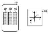 다양한 실시 예들에서, 전자 장치(101)는 편중 진동 장치(201, 202, 또는 203)를 포함할 수 있다. 편중 진동 장치는 전자 장치 자체를 일정한 방향으로 이동시키는 듯한 힘(또는 촉력)이 느껴지도록 야기하는 진동을 생성할 수 있는 모터일 수 있다. 전자 장치를 밀어내는 듯한 진동을 생성하기 위해, 편중 진동 장치는 다양한 진동 방식 중 적어도 하나에 기초하여 진동을 생성할 수 있다. 일부 실시 예들에서, 전자 장치(101)는 선형의 축 상에서 진동자의 운동 속도를 조절하는 진동 방식을 이용할 수 있다. 진동자의 운동 속도를 조절함으로써, 전자 장치(101)는 특정한 방향으로 편중되는 가속도를 생성할 수 있다. 다른 일부 실시 예들에서, 전자 장치(101)는 질량중심이 회전 축의 외부에 존재하는 회전체 쌍을 활용하여 특정한 방향으로 편중되는 가속도를 생성할 수 있다. 편중 진동 장치의 진동 방식은 상술한 예에 한정되지 않고, 사용자로 하여금 미는 듯한 힘을 느끼게 하는 다양한 진동 방식을 포함할 수 있다.In various embodiments, the