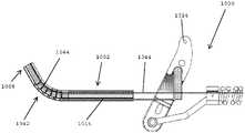 도 9는 일 실시예에 따른, 관절운동된 구성에 있는 기다란 샤프트를 갖는 어플리케이터 기구를 도시한 도면.