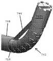 도 5 내지 도 7은 일 실시예에 따른, 기다란 샤프트의 원위 섹션이 관절운동된 구성에 있는 상태의, 수술용 패스너를 분배하기 위한 어플리케이터 기구를 도시한 도면.