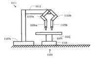 도 8a는 또한 상응하는 지지 구조부(1106b)에 의해 지지되는 상응하는 개별적인 원격조정 매니퓰레이터 및 단일-기기 어셈블리(1105b)를 갖는, 2, 3, 4, 5개 이상의 개별적인 컴퓨터 지원 장치가 포함될 수 있다는 것을 도시한 옵션의 제2 컴퓨터 지원 장치(1101b)를 도시하고 있다.  컴퓨터 지원 장치(1101b)는 기계적으로 접지되어 있고, 어셈블리(1105b)는 컴퓨터 지원 장치(110a)와 유사한 포즈를 갖고 있다.  수술 테이블(1100) 및 컴퓨터 지원 장치(1101a, 1101b)는 함께 멀티-기기 수술 시스템을 만들고, 이들은 여기에 기술된 대로 함께 작동한다.  일부 예에서, 컴퓨터 지원 장치(110a 및/또는 1101b)는 컴퓨터 지원 장치(110 및/또는 210)와 일치할 수 있다.FIG. 8A also shows that two, three, four, five or more individual computer aided devices may be included, with corresponding individual remote manipulators and single-