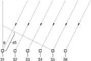 도 4는 일렬로 배열되는 제1 내지 제6 음향 센서들(S1-S6)을 예시적으로 도시한다. 제1 내지 제6 음향 센서들(S1-S6)은 빔 방위(θ)로부터 음파 신호를 수신할 수 있다. 도 4에 도시된 바와 같이, 빔 방위(θ)에 따라 제6 음향 센서(S6)에 음파 신호가 가장 먼저 도달하고, 제1 음향 센서(S1)에 음파 신호가 가장 늦게 도달한다. 예컨대, 제1 음향 센서(S1)와 제5 음향 센서(S5) 사이에 빔 경로차(d5)가 존재하며, 이 빔 경로차(d5)를 음파 신호의 속도로 나눈 값은 제5 음향 센서(S5)의 제1 음향 센서(S1)에 대한 지연 신호값일 수 있다. 본 예에서는 빔 방위(θ)가 양수이므로, 제5 음향 센서(S5)의 제1 음향 센서(S1)에 대한 지연 신호값은 음수이다. 이러한 방식으로, 빔 방위(θ)에 기초하여 음향 센서들 각각의 지연 신호값들(τi,θ)이 산출될 수 있다.FIG. 4 illustratively illustrates first to sixth acoustic sensors S1 to S6 arranged in a line. The first to sixth acoustic sensors S1 to S6 may receive sound wave signals from the beam direction θ. As shown in FIG. 4 , according to the beam orientation θ, the sound wave signal reaches the sixth acoustic sensor S6 first, and the first acoustic sensor S1 arrives last. For example, there is a beam path difference d5 between the first acoustic sensor S1 and the fifth acoustic sensor S5, and the value obtained by dividing the beam path difference d5 by the speed of the sound wave signal is the fifth acoustic sensor ( It may be a delay signal value for the first acoustic sensor S1 of S5). In this example, since the beam direction θ is a positive number, the delay signal value for the first acoustic sensor S1 of the fifth acoustic sensor S5 is a negative number. In this way, delay signal values τi, θ of each of the acoustic sensors can be calculated based on the beam orientation θ.