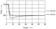 이에 반해서, 제2 암(14)이 회동 각도(θ)를 90 °로 회동하였을 때에, 실제로 얻어진 측정 압력 Pt(θ)는 약 152 (%)이다. 이러한 측정 압력 Pt(θ)는 이론 압력 Pk(θ)의 약 148 (%) 보다 높다. 제2 암(14)이 회동 각도(θ)를 9 °로 회동하였을 때에, 측정 압력 Pt(θ)는 약 88 (%)로 저하된 후, 시간(T)(sec)의 경과에 의해, 약 100 (%)까지 점차 증가하고 있다. 이러한 측정 압력 Pt(θ)와 이론 압력 Pk(θ)의 차이는 시간의 경과에 의해 점차 감소하고 있다.In contrast, when the