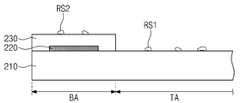 도 9a에 도시된 것과 같이, 상기 커버 글래스(210)의 상기 베젤 영역(BA)에 전면적으로 중첩되도록 액상 수지 물질을 도포하고, 상기 액상 수지 물질을 경화 시켜 상기 수지층(230-2)을 형성한다. 이때 상기 경화하는 단계에서 미경화 물질(RS1)이나 먼지 등의 이물질(RS2) 등이 상기 커버 글래스(210)의 상기 투과 영역(TA)이나 상기 수지층(230-2) 상에 존재할 수 있다.As shown in FIG. 9A , a liquid resin material is applied so as to entirely overlap the bezel area BA of the
