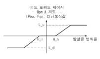 도 9는 본 발명의 실시예에 따른 운전자 성향이 방어운전 성향이 낮은 방향으로 천이된 경우 피드포워드 펌프 Rpm, 팬 Rpm, 밸브 개도 보상값을 나타내는 그래프이다. 도 9를 참조하면 발열량 변화율이 제 1 기준값 H_l이하인 경우 펌프 Rpm, 팬 Rpm, 밸브 명령값에 대한 보상값 L_d을 산출한다. 이때 보상값 L_d는 운전자 성향 제어인자의 하향 조정을 위해 마이너스값으로 산출될 수 있다.9 is a graph showing compensation values for feedforward pump Rpm, fan Rpm, and valve opening degree when the driver's propensity shifts to a lower defensive driving propensity according to an embodiment of the present invention. Referring to FIG. 9 , when the heating value change rate is less than or equal to the first reference value H_l, compensation values L_d for pump Rpm, fan Rpm, and valve command values are calculated. At this time, the compensation value L_d may be calculated as a negative value for downward adjustment of the driver propensity control factor.
