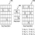 다른 예로서, 입력 피처 매트릭스에 대하여 평균 풀링(average pooling)이 적용되는 경우, 동일한 출력 피처 인덱스에 대응하는 입력 피처값들이 합산되고, 합산값이 복수의 입력 피처값의 개수에 기초하여 나누어진 후, 그 결과 값이 출력 피처 인덱스에 대한 출력 피처값으로 제공될 수 있다.  그러나, 본 개시의 실시예는 이에 한정되지 않으며, 다양한 종류의 풀링 동작이 적용될 수 있다.