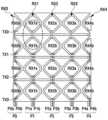 복수의 구동 전극(TX0, TX1, TX2,??)과 복수의 수신 전극(RX0, RX1, RX2,??)의 사이, 특히 이들의 교차부에는, 소정의 커패시턴스(14)(C00, C01, C10, C11,??Cnm)가 형성된다.Between the plurality of driving electrodes TX0, TX1, TX2, ?? and the plurality of receiving electrodes RX0, RX1, RX2, ?? C10, C11, ??Cnm) are formed.