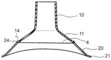상기 예시에서, 기본 바디(20)는 직원뿔대 형태를 포함한다.  이것은 그 자체로 폐쇄된 3차원 곡선, 즉 하나의 평면에 놓이지 않는 곡선에서 가슴에 인접하여 종료된다.  상기 3차원 곡선은 레이온 에지(21)를 형성한다.In the above example, the
