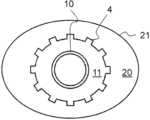깔때기(11)와 대면하는 칼라(2)의 제1 단부는 깔때기(11)의 인접 단부와 동일한 형태를 포함한다.  여기에서 이것은 원형이다.  이것은 도 8에서 볼 수 있는 바와 같이 제2 접촉면(22)을 형성한다.The first end of the