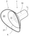 Figure 4 shows a longitudinal cross-section of a second embodiment of a breast shield according to the invention.