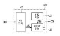 일 실시 예에서, 상기 버퍼 분석 데이터는 상기 출력 버퍼부의 사용량이 미리 결정된 제2 임계 용량을 초과한 횟수인 제2 카운트 값을 포함하고, 상기 임계값은 상기 출력 버퍼에 대해 미리 결정된 제4 임계 횟수를 포함할 수 있다. 미리 결정된 제1 기간 동안 측정된 상기 제2 카운트 값이 상기 제4 임계 횟수보다 작은 큰 경우, 상기 버퍼 용량 결정부는 상기 출력 버퍼의 용량을 감소시킬 것을 결정할 수 있다.In one embodiment, the buffer analysis data includes a second count value that is the number of times the amount of use of the output buffer unit exceeds a second predetermined threshold capacity, and the threshold value is a fourth predetermined threshold number of times for the output buffer. can include When the second count value measured during the first predetermined period is greater than the fourth threshold number of times, the buffer capacity determiner may determine to reduce the capacity of the output buffer.