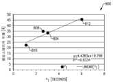 도 7은 본 발명의 실시예에 따른 방법에 기초하여 측정된 높은-k 유전체의 두께와 높은-k 유전체로부터 얻어진 시상수를 상호 관련시키는 그래프이다.1 is a flow diagram illustrating a method for characterizing structural defects in a high-k dielectric based on second harmonic generation (SHG) according to an embodiment of the present invention.