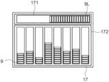 Fig. 17 is a plan view of a main part of the card distributing device according to the second embodiment of the present invention, in a partially broken state of the card guide part.