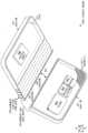 도 3에서 도시되는 구현예에서, 순차적 멀티 피벗 힌지 어셈블리(106)는, 비교적 영구적인 방식으로(예를 들면, 최종 사용 소비자에 의해 쉽게 분리될 수 있도록 의도되지 않는 방식으로) 제1 및 제2 부분(102 및 104)에 고정될 수 있다. 대안적으로, 순차적 멀티 피벗 힌지 어셈블리(106)는 비교적 신속하게 부착가능한/분리가능한 방식으로(예를 들면 최종 사용 소비자에 의해 쉽게 분리될 수 있도록 의도되는 방식으로) 제1 및 제2 부분(102, 104)에 고정될 수 있다. 이 후자 구성의 하나의 이러한 예가 도 4에 도시되어 있다.In the implementation shown in FIG. 3 , the sequential multi-pivot hinge assembly 106 connects the first and second in a relatively permanent manner (eg, in a manner not intended to be readily detachable by the end-use consumer). It can be fixed to