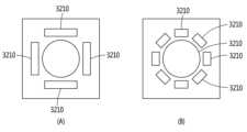 도 6을 참조하면, 도 6 (A)는 전도성 스펀지(3100)를 중심으로 4방 각각에 배치된 4개의 제1 전극(3210)의 예가 도시되고, 도 6 (B)는 전도성 스펀지(3100)를 중심으로 8방 각각에 배치된 8개의 제1 전극(3210)의 예가 도시되어 있다.Referring to FIG. 6, FIG. 6 (A) shows an example of four