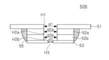 본 실시예에 채용된 제2 금속 플레이트는 2개의 제2 금속 플레이트(52a,52b)를 포함할 수 있다. 2개의 제2 금속 플레이트(52a,52b)에 형성된 홀(H2a,H2b)은 서로 동일한 크기(d2a=d2b)를 가질 수 있다. 또한, 상기 홀(H2a,H2b)의 크기는 상기 제1 금속 플레이트(51)의 홀 크기(d1)에 대응되어 하나의 수용부를 제공할 수 있다. 상기 복수의 제2 금속 플레이트(52a,52b)와 상기 제1 및 제3 금속 플레이트(51,53)는 하나의 용접부(55)에 의해 서로 연결될 수 있다.