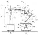 셋업 구조부(220)의 링크 및 조인트는 암 장착 플랫폼(227)의 위치 및 방향(즉, 포즈)을 변경하기 위한 다양한 자유도를 포함하고 있다. 예를 들어, 2-파트 컬럼이 축(232)을 따라 쇼울더 조인트(223)를 이동시킴으로써 암 장착 플랫폼(227)의 높이를 조정하는데 사용될 수 있다. 이러한 암 장착 플랫폼(227)은 쇼울더 조인트(223)를 사용하여 이동 카트(215), 2-파트 컬럼, 및 축(232)에 대해 추가로 회전될 수 있다. 암 장착 플랫폼(227)의 수평 위치 역시 2-파트 붐을 사용하여 축(234)를 따라 조정될 수 있다. 그리고 암 장착 플랫폼(227)의 방향 역시 팔목 조인트(226)를 사용하여 암 장착 플랫폼 배향 축(236)에 대해 회전함으로써 조정될 수 있다. 따라서, 셋업 구조부(220)의 링크 및 조인트의 모션 리미트에 의해, 암 장착 플랫폼(227)의 위치는 2-파트 컬럼을 사용하여 이동 카트(215) 위로 수직으로 조정될 수 있다. 암 장착 플랫폼(227)의 위치 역시 각각 2-파트 붐 및 쇼울더 조인트(223)를 사용하여 이동 카트(215)에 대해 방사형으로 그리고 각지게 조정될 수 있다. 그리고 암 장착 플랫폼(227)의 각도 방향 역시 팔목 조인트(226)를 사용하여 변경될 수 있다.The links and joints of the